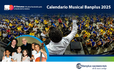 También, hemos desarrollado nuestro innovador Calendario Musical Banplus con la producción y dirección del maestro Miguel Delgado Estévez. Accede a sus cuatro ediciones con un clic para su lectura en línea. Además de sus novedosos textos, no te pierdas sus diseños originales y la novedad que encontrarás en los meses de cada uno: se trata de audios con narraciones del maestro Miguel Delgado Estévez e interpretaciones propias, más coros y cantantes invitados que te sorprenderán. ¡Disfrútalos, descárgalos y compártelos!